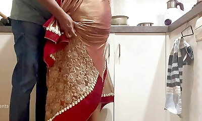 Indian Duo Romance in the Kitchen - Saree Sex - Saree lifted up and Ass Spanked