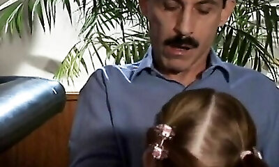 Dirty older man gets his humungous cock sucked by hot babysitter then fucks