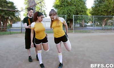 Sexy football gals are penetrated and jizzed by horny coach with big cock